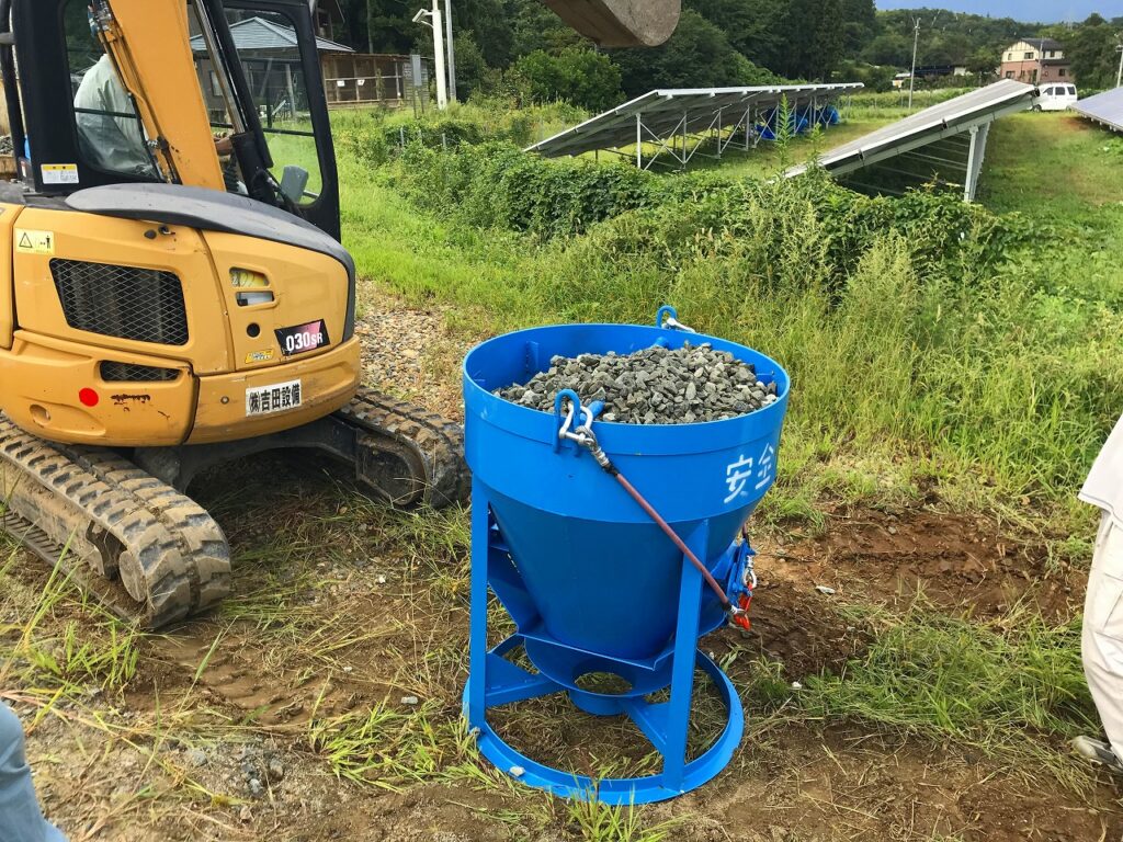 - 専用の重機:地面に穴を掘り、砕石を入れて締め固めるための機械 ※写真左側
