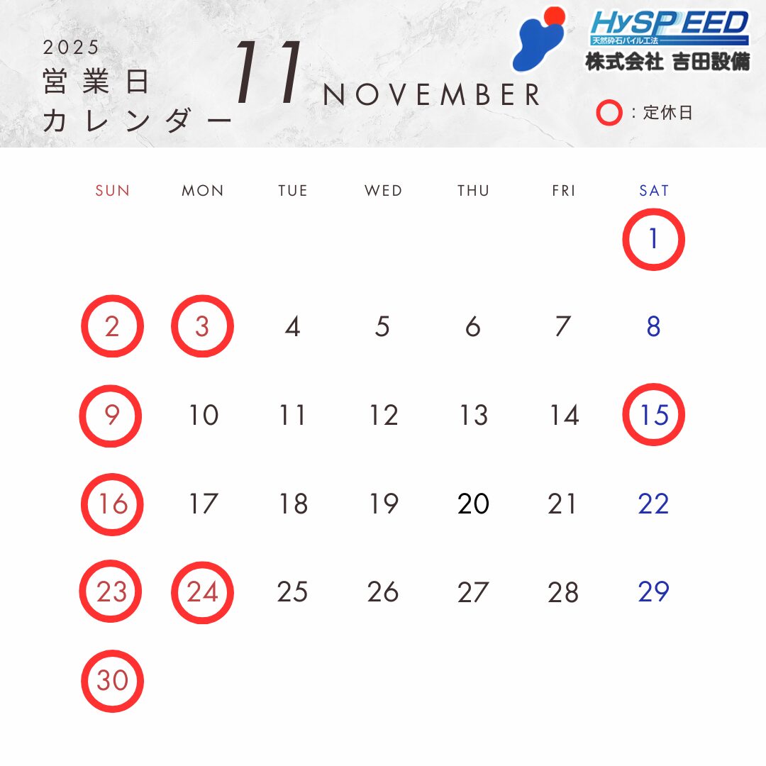 なお、赤丸が付いている日付けが基本定休日となっておりますが、