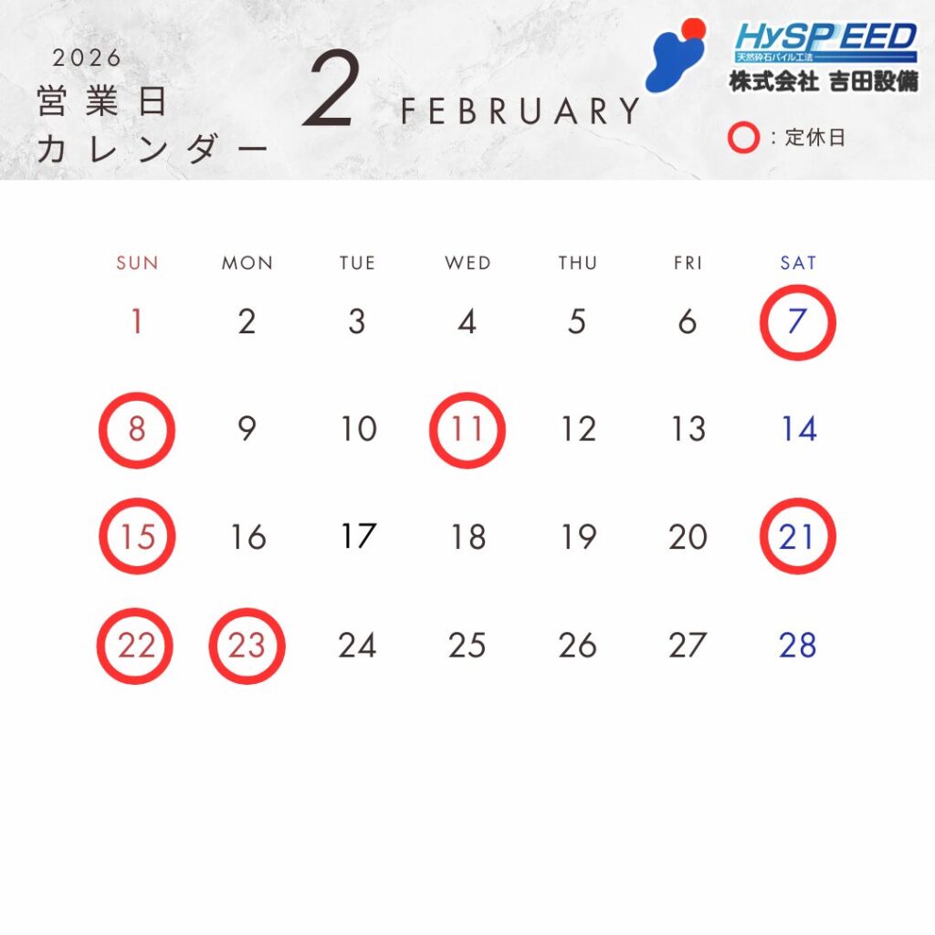 なお、赤丸が付いている日付けが基本定休日となっておりますが、